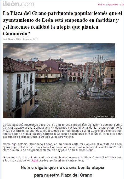 La Plaza del Grano patrimonio popular leonés que el ayuntamiento de León está empeñado en fastidiar y ¿si hacemos realidad la utopía que plantea Gamoneda? Irma Basarte Diez | 12 enero, 2017